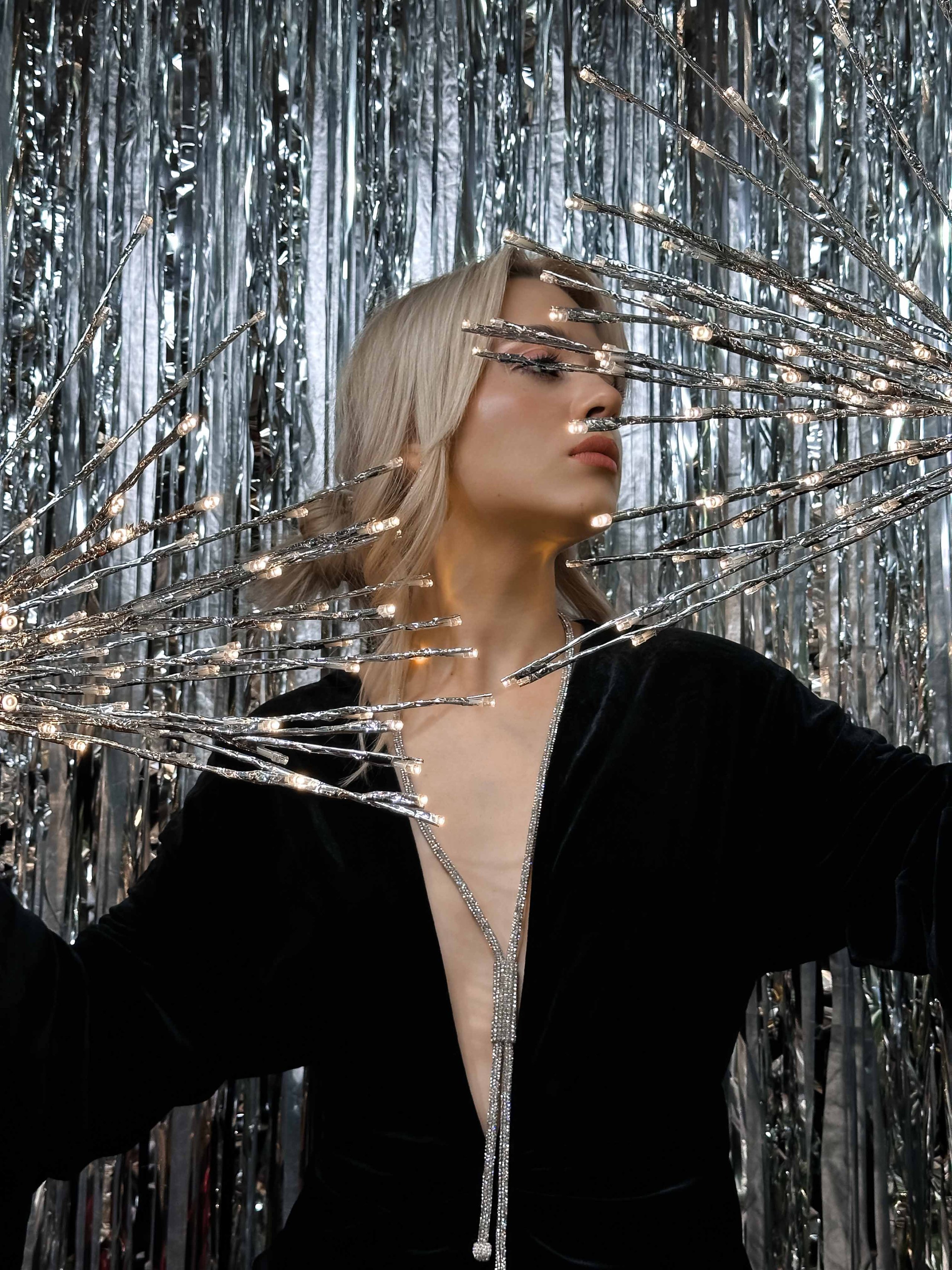 Тренд, який також перекочував до нас з минулого року, але якщо в минулому році, він лише почав свою популярність, то в цьому набрав швидкості, та став масштабним. Можна використовувати, як окремий елемент декорування простору, а можна оформити повністю ялинку, лише зі звисаючих дощиків. Цей тренд теж є камбеком до вінтажних кіно та домашнього вайбу 2000-х.
